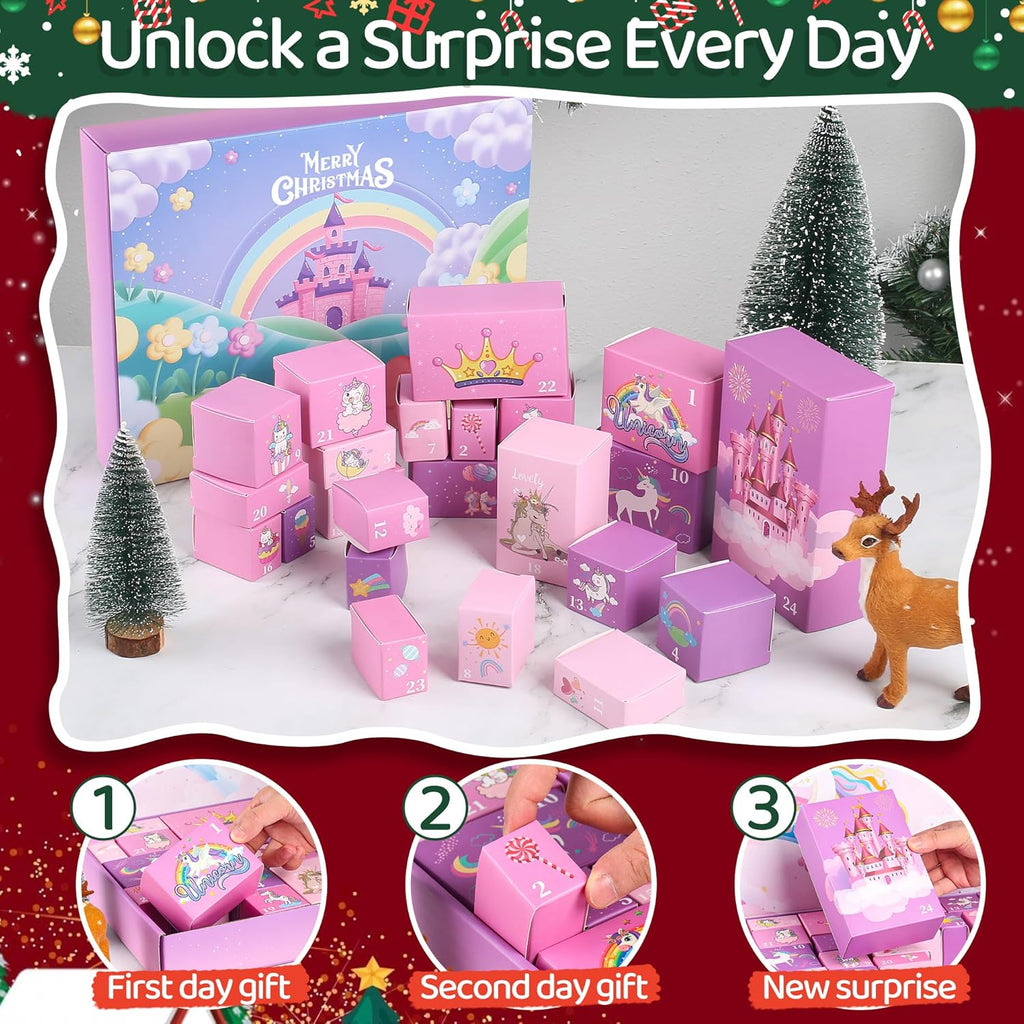 Der Einhorn Weihnachts-Countdown beinhaltet 57 einzigartige Schmuckstücke und Geschenke, die jedes Mädchen begeistern werden.