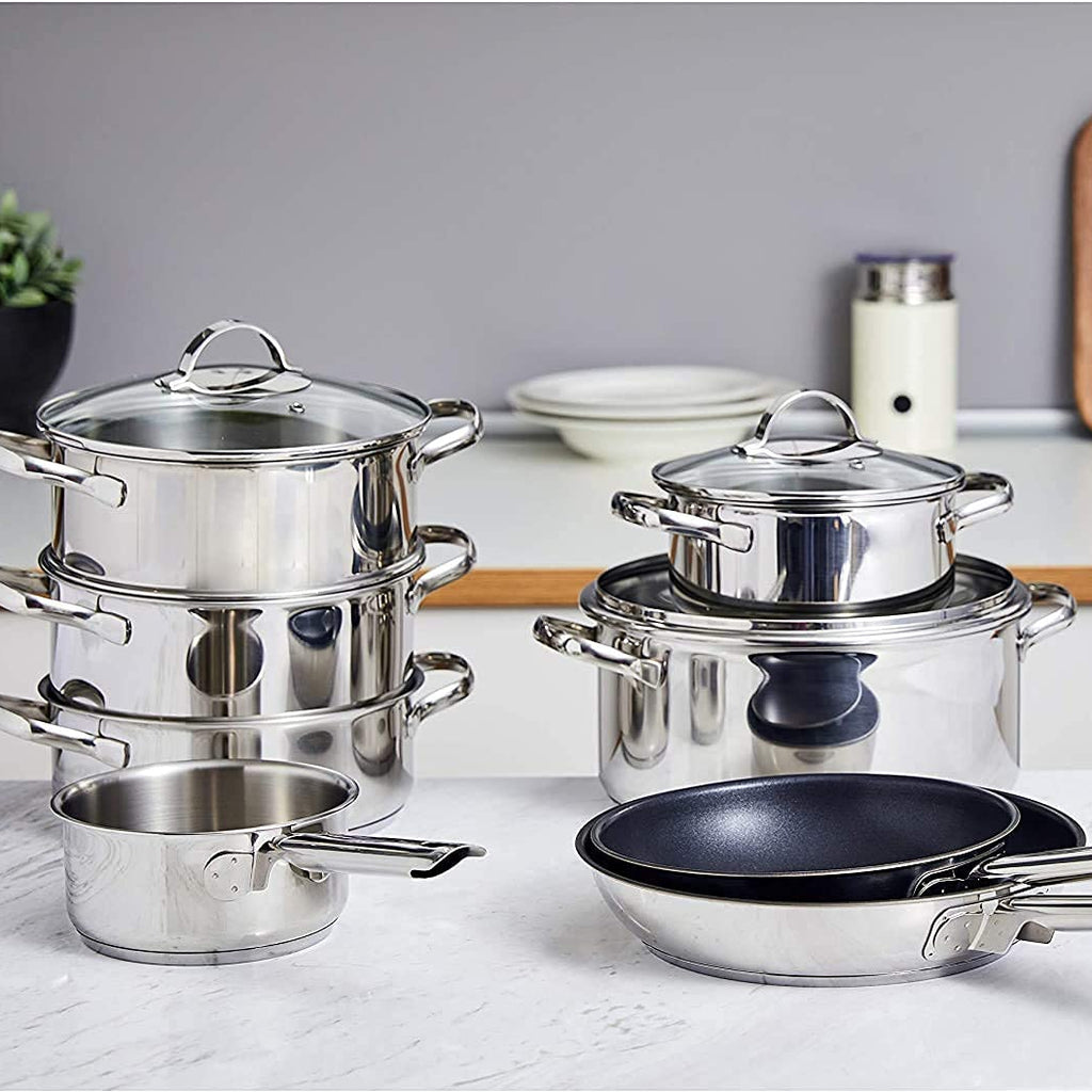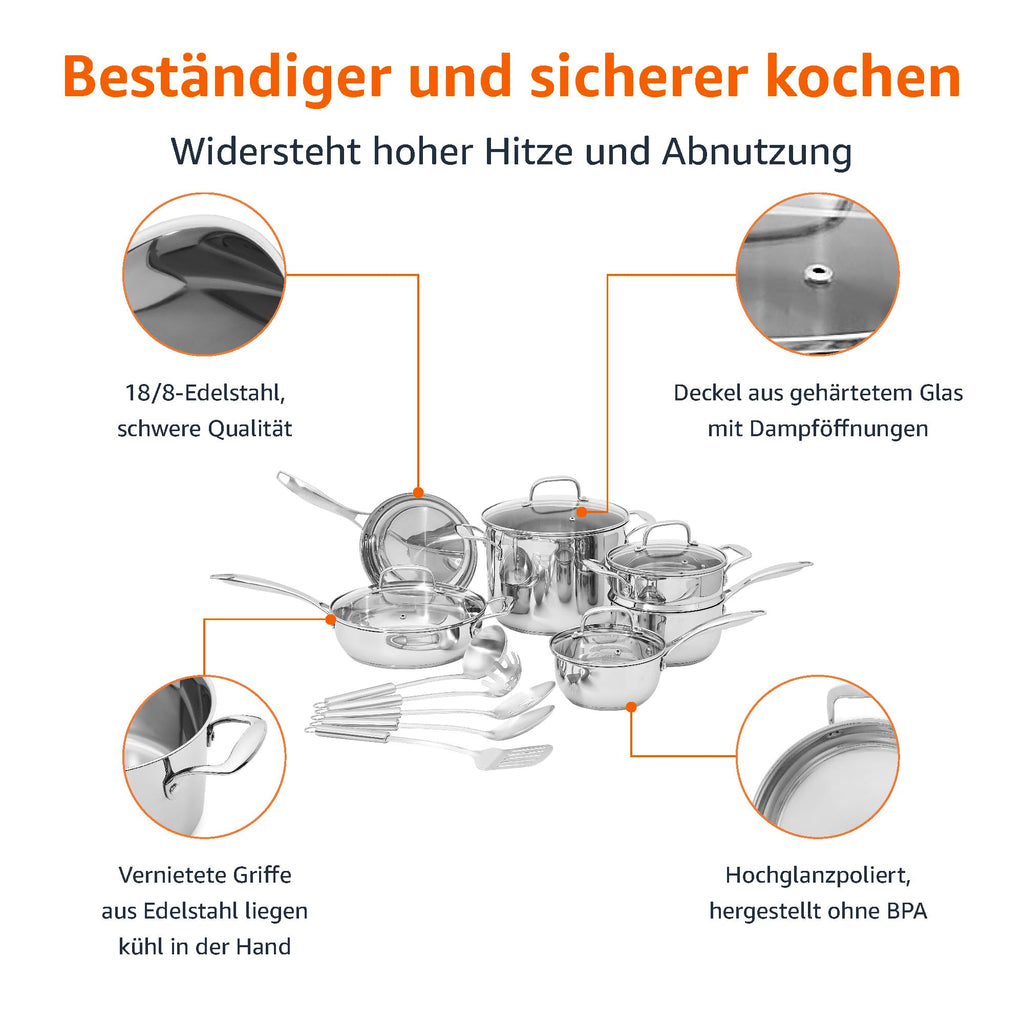 Hochwertiges Edelstahl-Induktionskochgeschirr mit passendem Deckel.