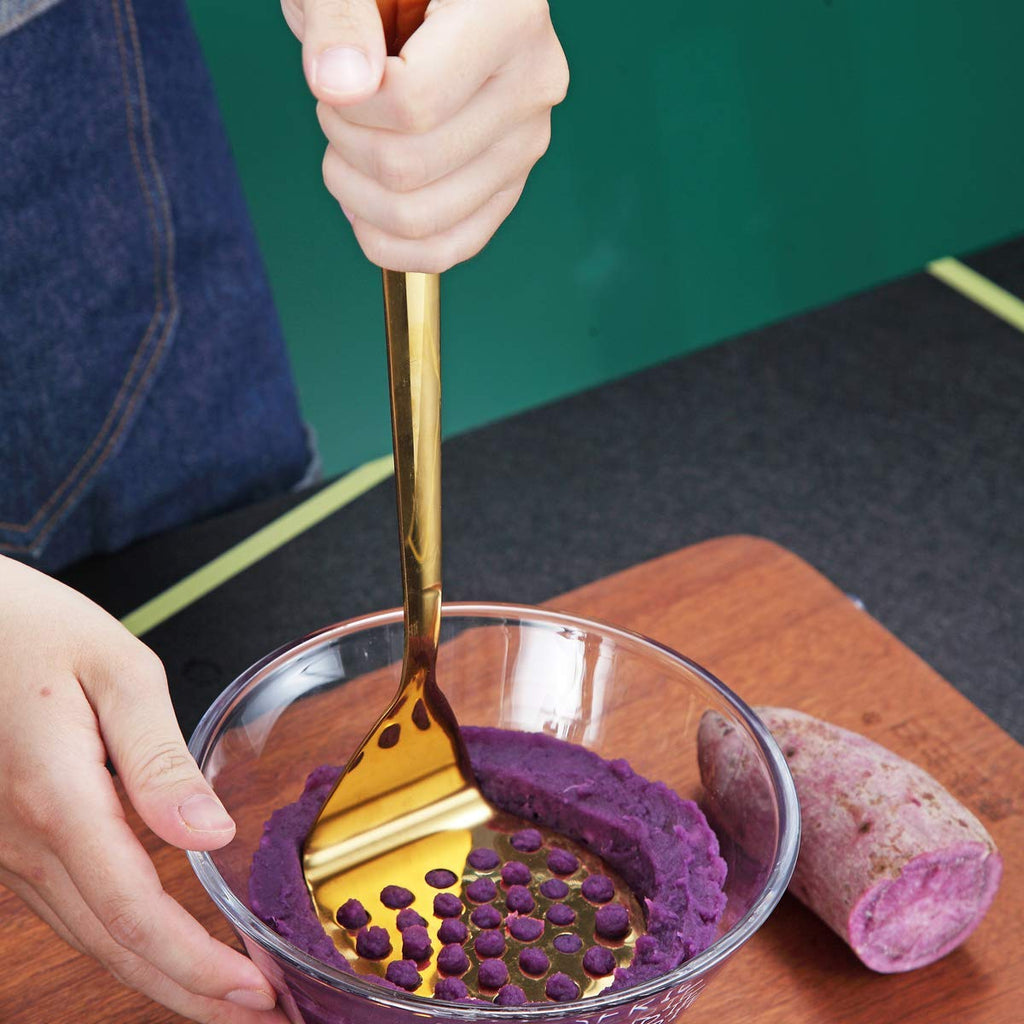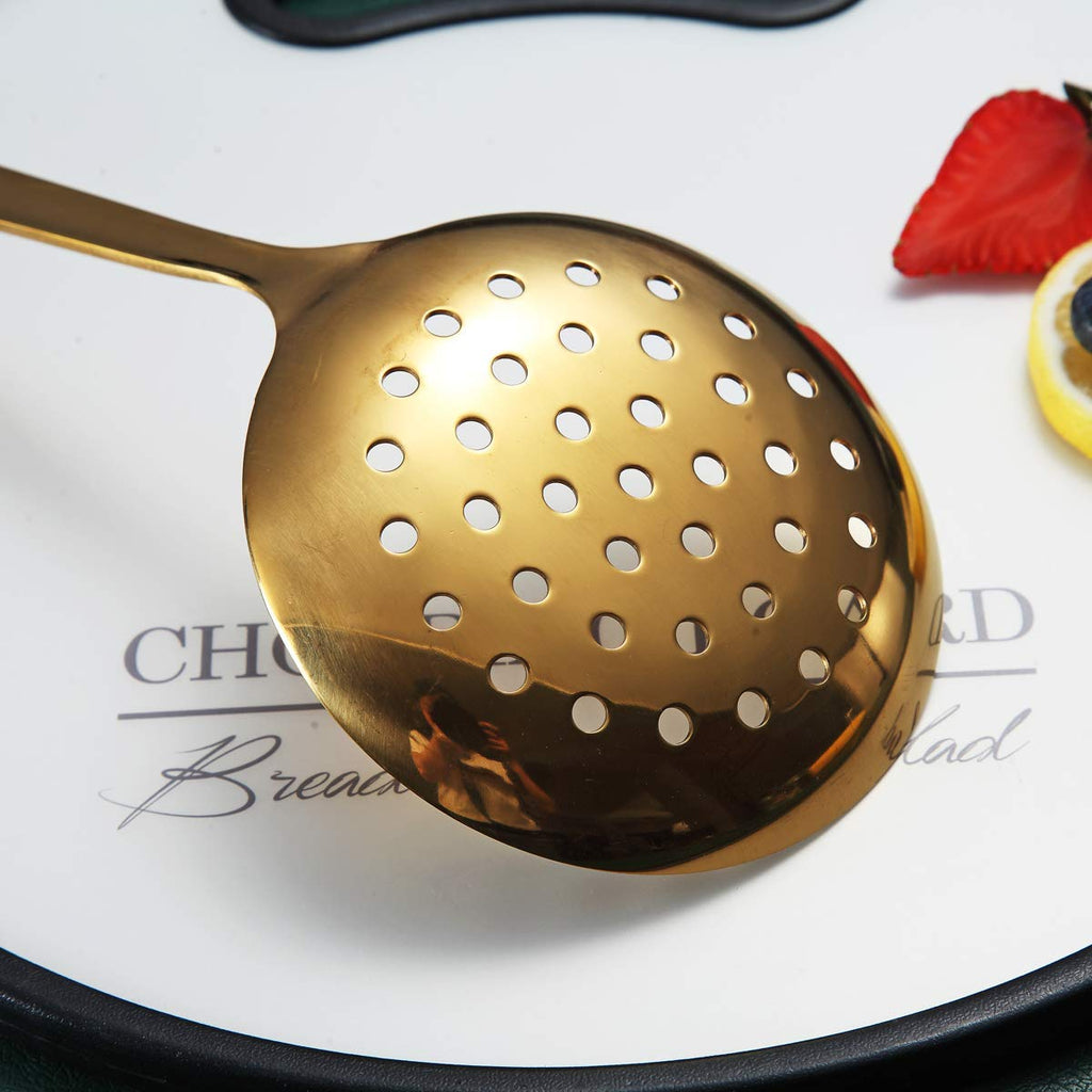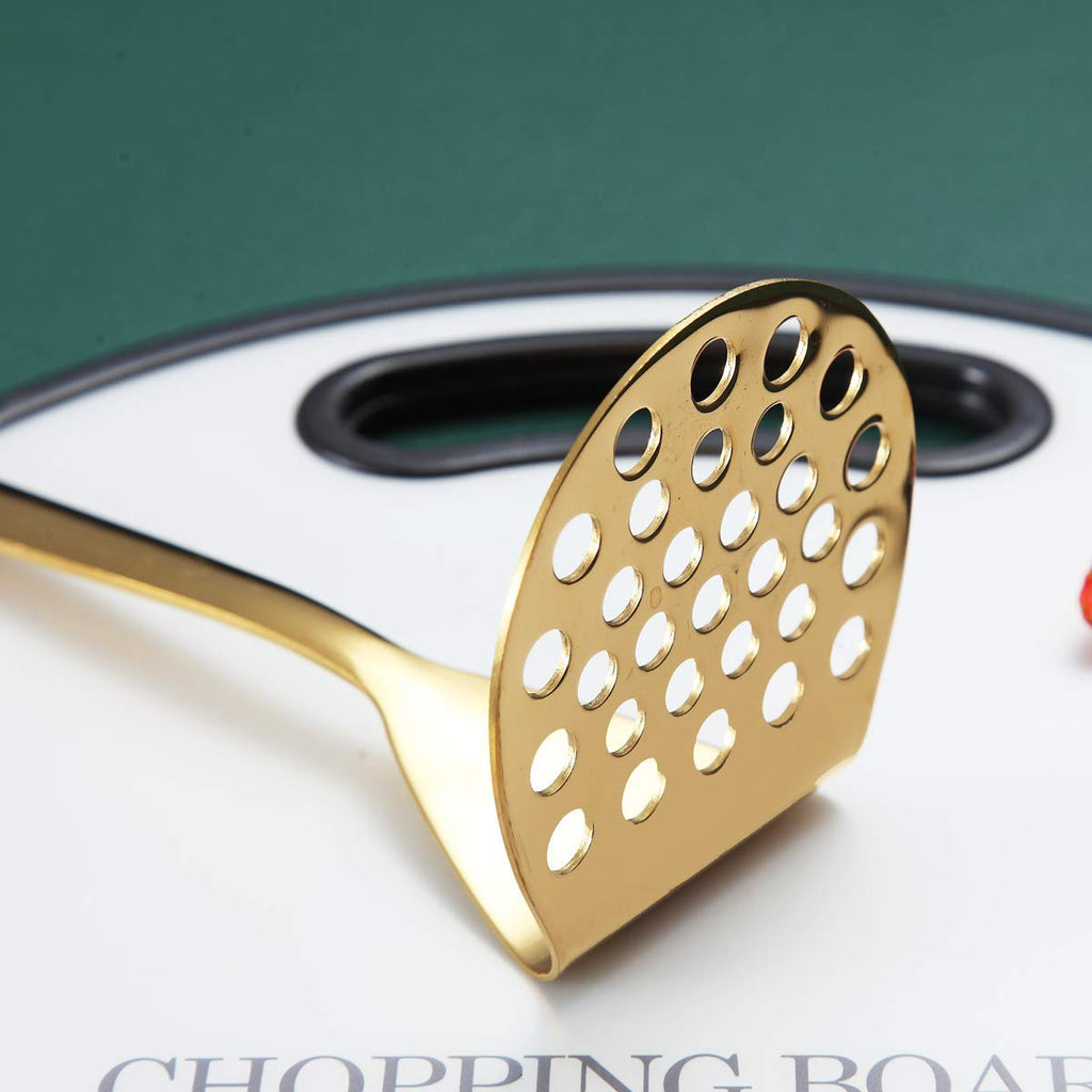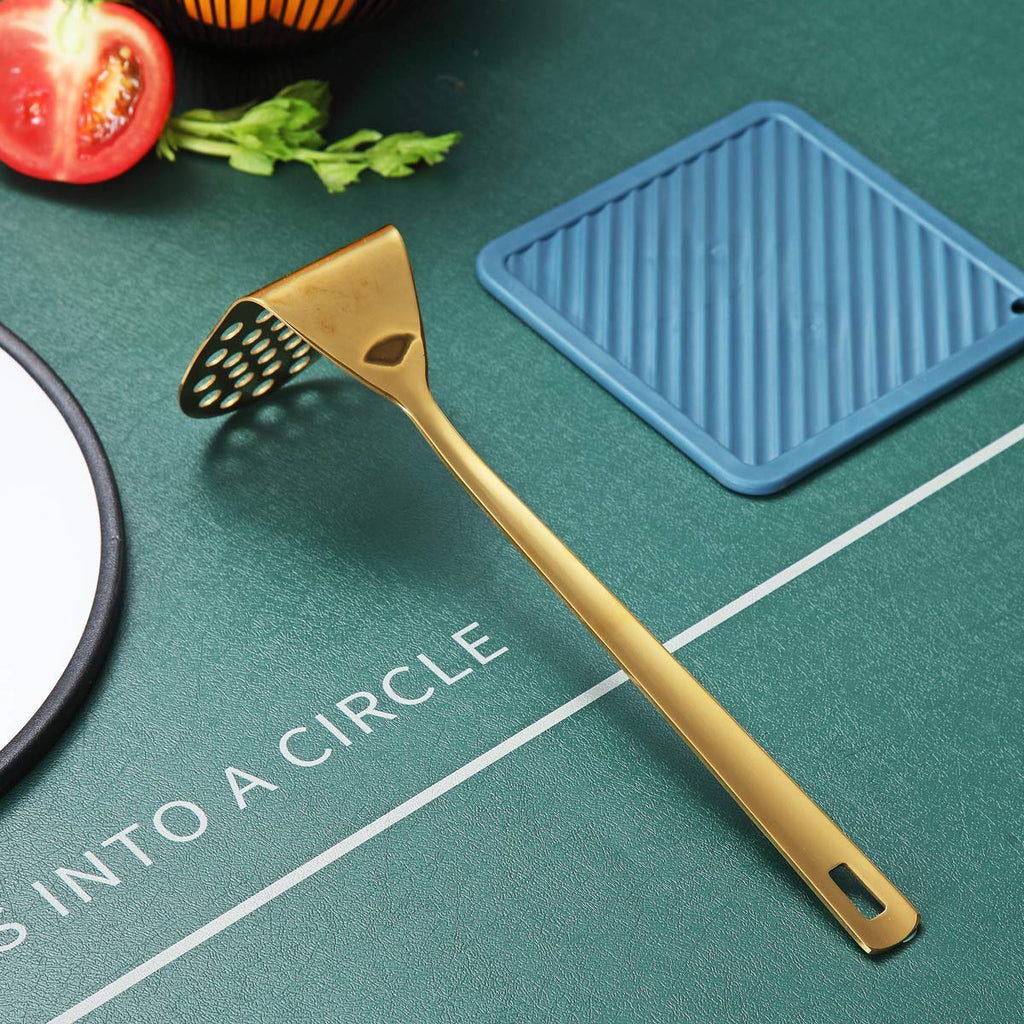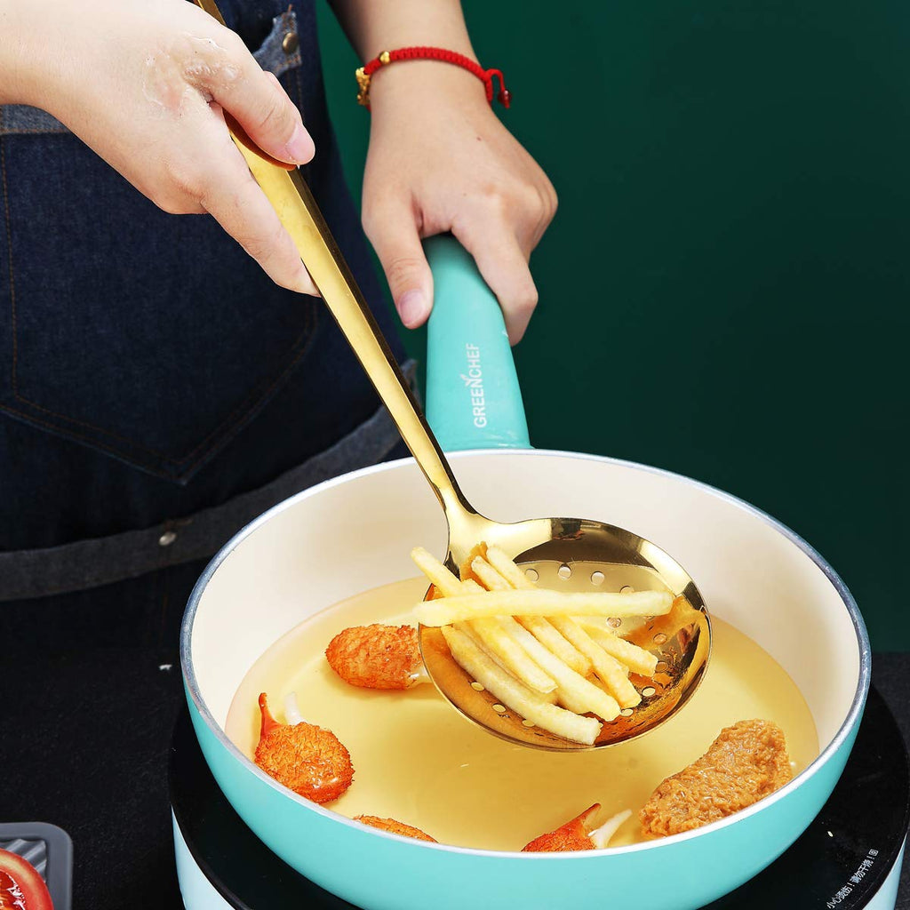 Dieses Goldfarbene Kochutensilien Set beinhaltet 13 Stücke aus hochwertigem Edelstahl, beschichtet mit Titan für zusätzliche Langlebigkeit.