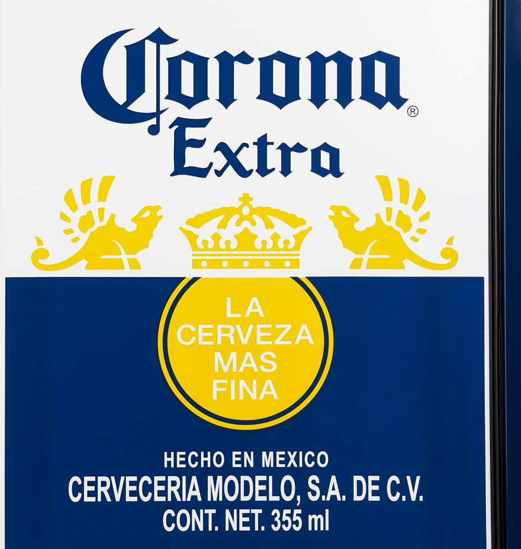 • 🍺 Attraktives Design: Der Kühlschrank mit transparenter Glastür besitzt ein stilvolles Corona-Branding
