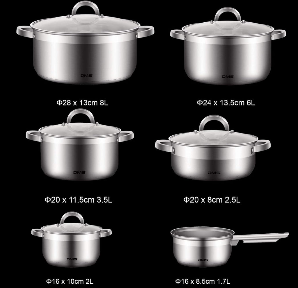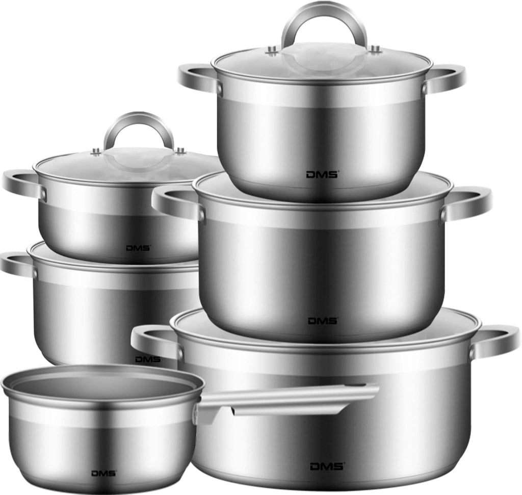 Kochtopfset, hochwertiger Edelstahl, geeignet für Induktions Herde, beschichtetes Kochset, Küchenkochgeschirrset, leicht zu reinigen, Kochtopf, Glasdeckel