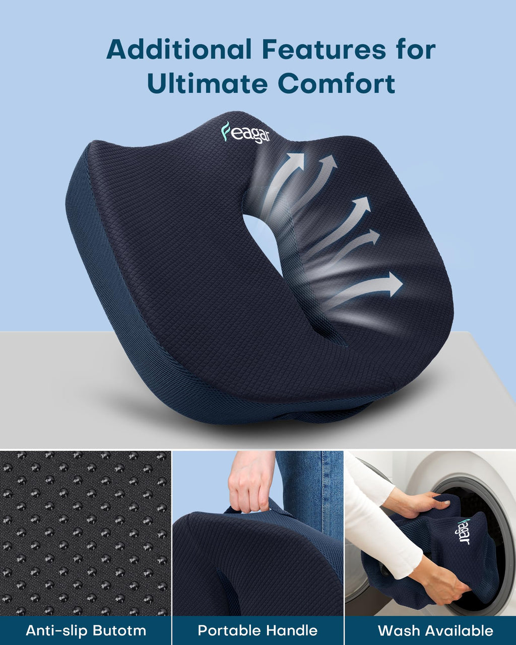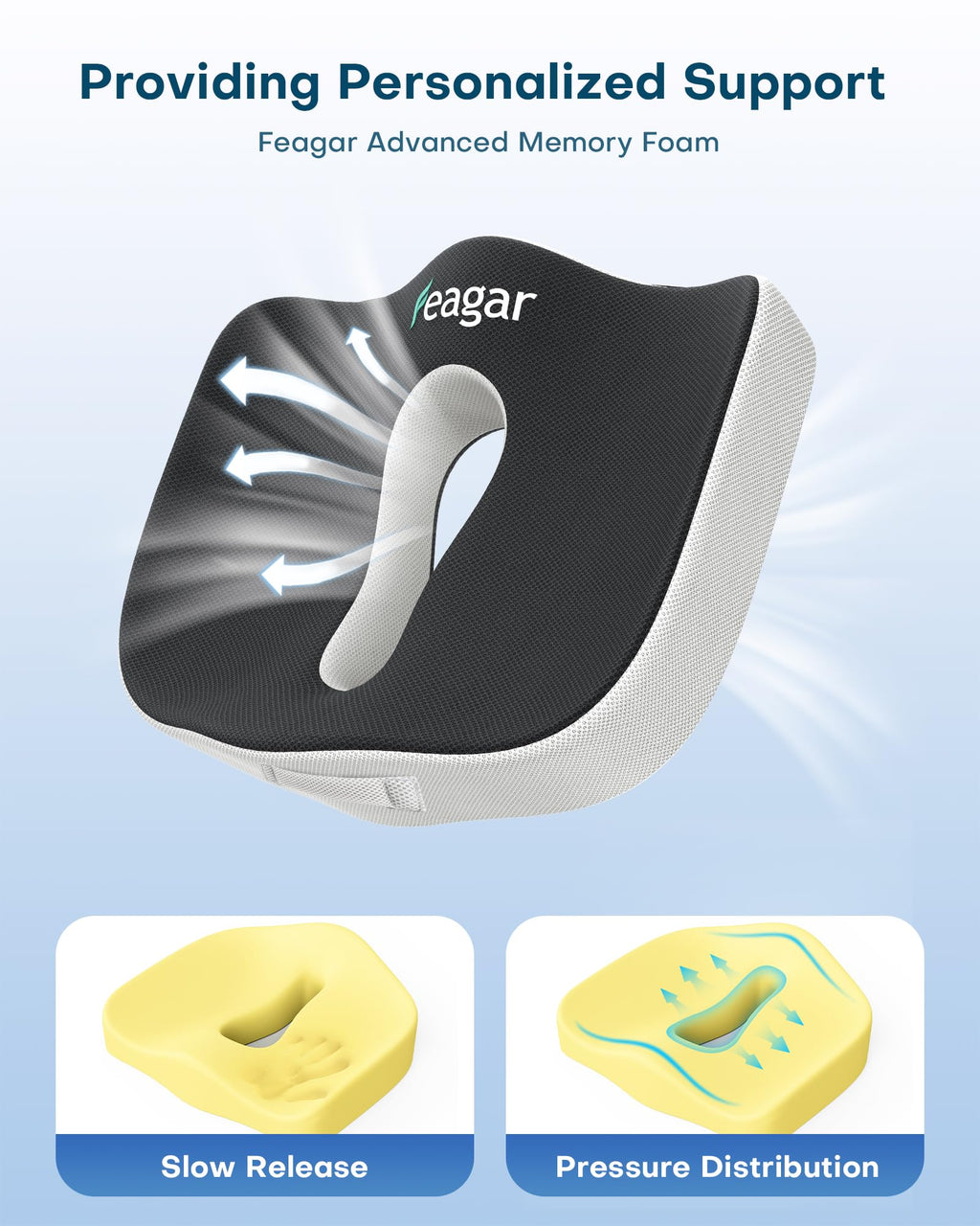 - Ergonomisches Design: Das Feagar Sitzkissen ist vorne niedrig und hinten hoch, um sich der Körperform anzupassen. Mit hohlem Design reduziert das ergonomische Sitzkissen den Druck auf den Ischiasnerv und lindert schmerzhafte Hämorrhoiden. passt sich den Konturen des Unterkörpers an und bietet natürliche Unterstützung an Ihren empfindlichsten Stellen. Hinweis: Das Sitzkissen lindert nur den Schmerz, es ist kein Heilmittel