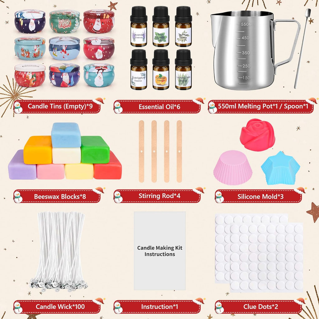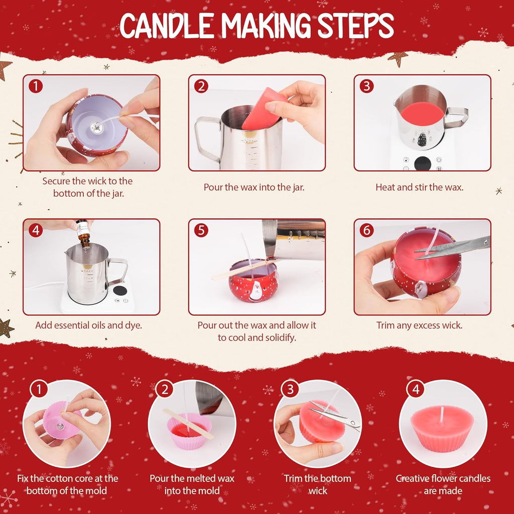 Erstellen Sie Ihre eigenen Duftkerzen mit dem Kerzen Selber Machen Set! Verwandeln Sie 500 g Bienenwachs, 9 Kerzendosen, 6 Duftöle, 3 Silikonformen, 100 Dochte, einen Kerzenschmelztopf, einen Rührlöffel und einen Dochthalter in ein einzigartiges Geschenkset. Perfekt für DIY-Liebhaber und Anfänger, um ein entspannendes und duftendes Ambiente zu schaffen.