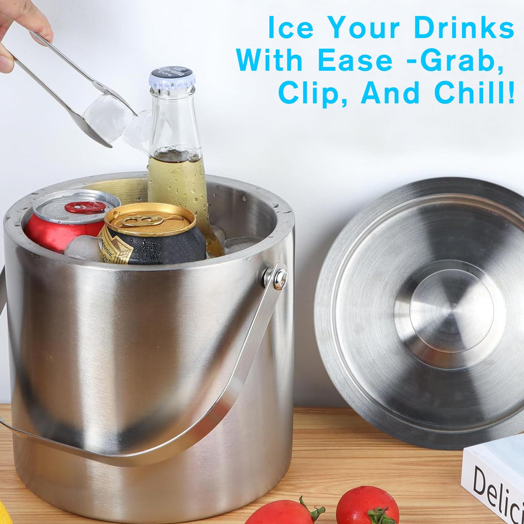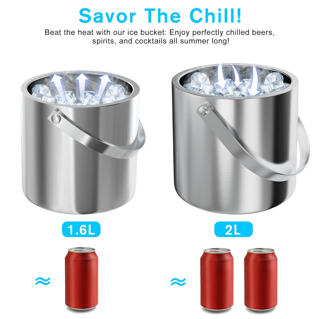 Tragbares Design mit ausreichender Kapazität: Dieser 1,6-Liter-Eiskübel ist für Komfort konzipiert und bietet eine kompakte Größe, ohne die Kapazität zu beeinträchtigen. Es kann bequem eine Whiskyflasche oder zwei Flaschen Getränke aufnehmen, was es zur idealen Wahl für verschiedene Anlässe macht. Der robuste, ergonomisch gestaltete Griff sorgt auch bei längerem Gebrauch für einen komfortablen Grip.