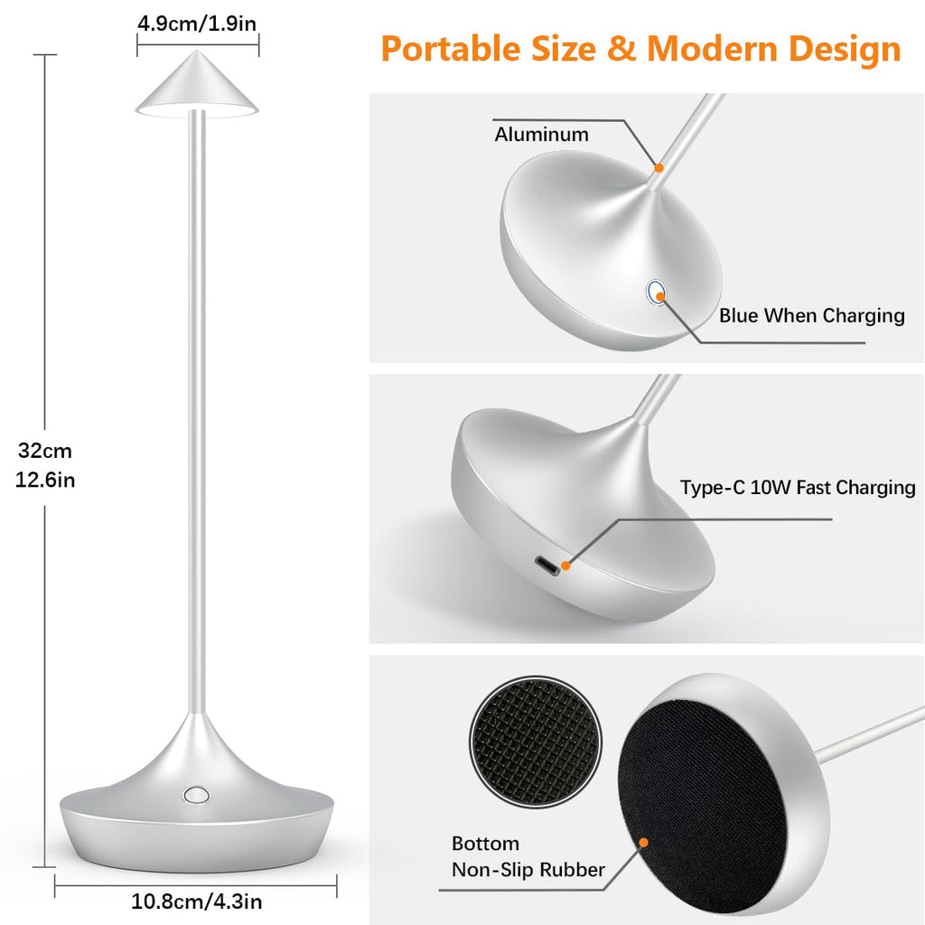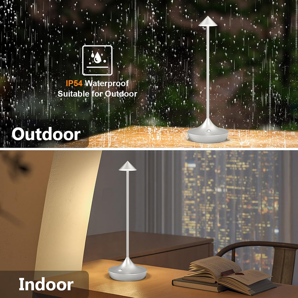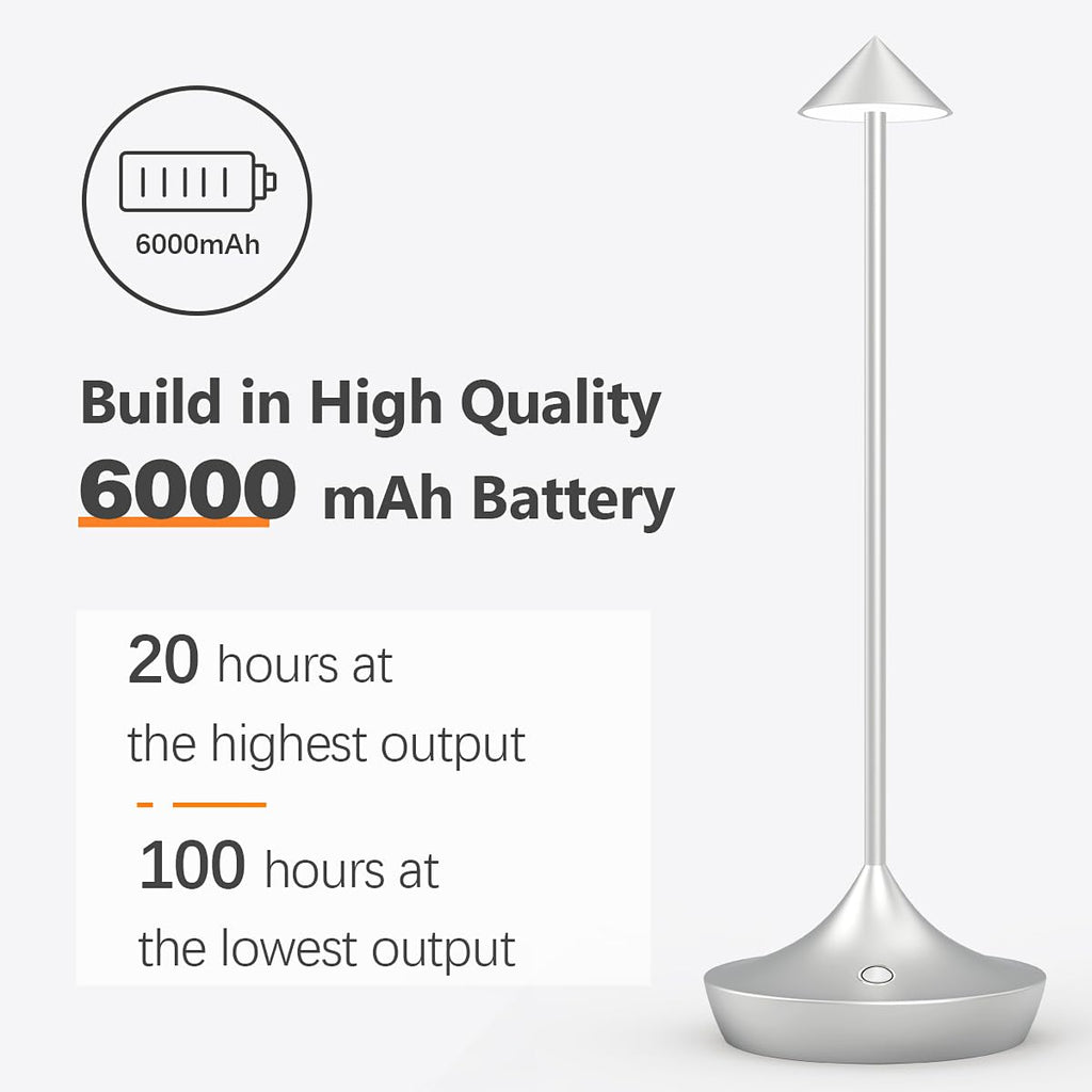 Diese Drahtlose LED-Tischlampe ist aus modernem Aluminium gefertigt und bietet eine Dimm-Funktion. Mit einer Kapazität von 6000 mAh ist sie wiederaufladbar und eignet sich sowohl für den Innen- als auch für den Aussenbereich - perfekt für Restaurants und Tische im Freien. Wasserdicht für alle Wetterbedingungen.
