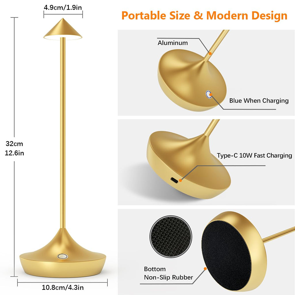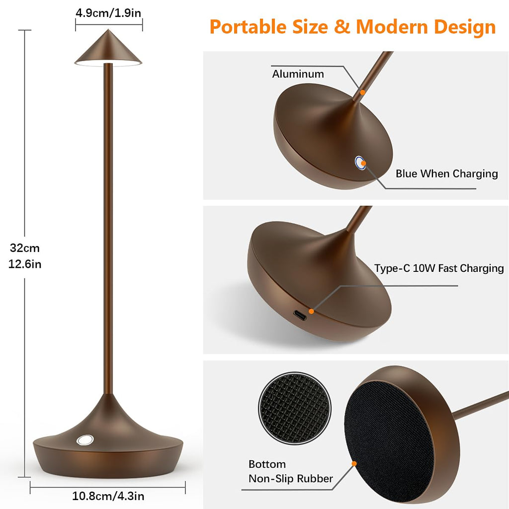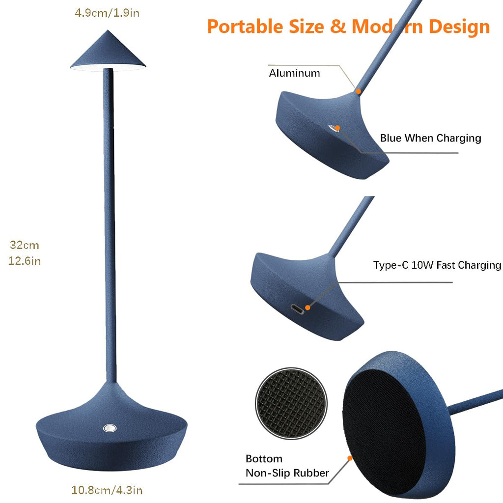 Diese Drahtlose LED-Tischlampe ist aus modernem Aluminium gefertigt und bietet eine Dimm-Funktion. Mit einer Kapazität von 6000 mAh ist sie wiederaufladbar und eignet sich sowohl für den Innen- als auch für den Aussenbereich - perfekt für Restaurants und Tische im Freien. Wasserdicht für alle Wetterbedingungen.