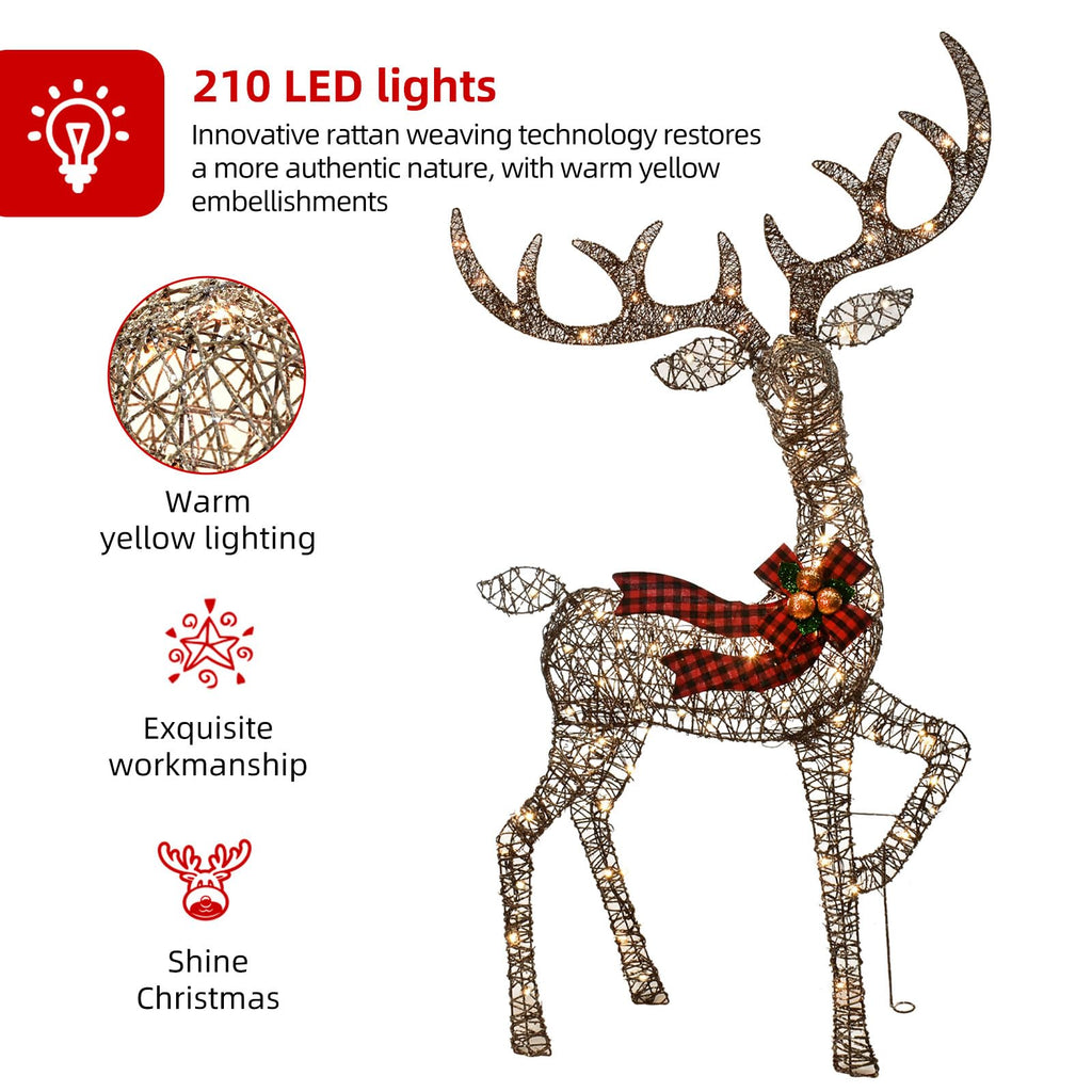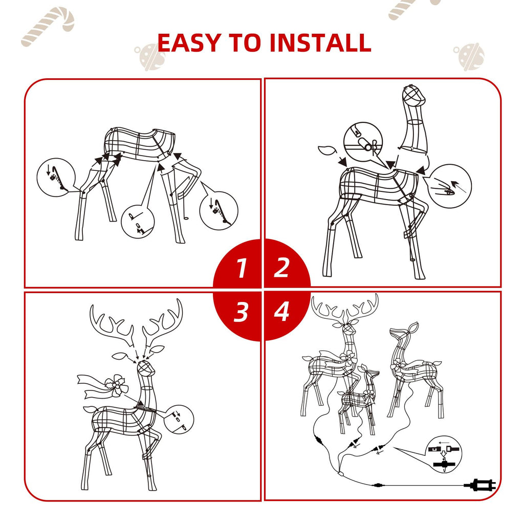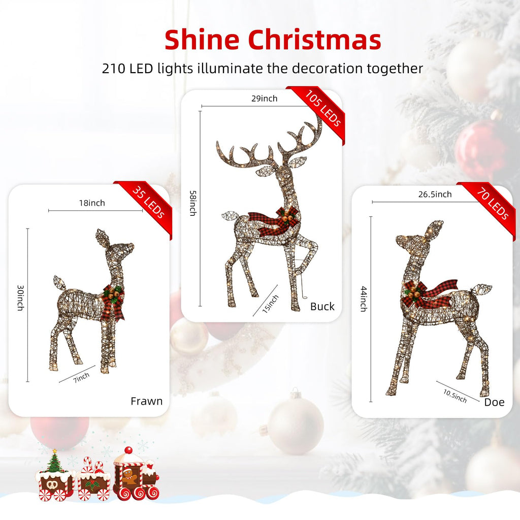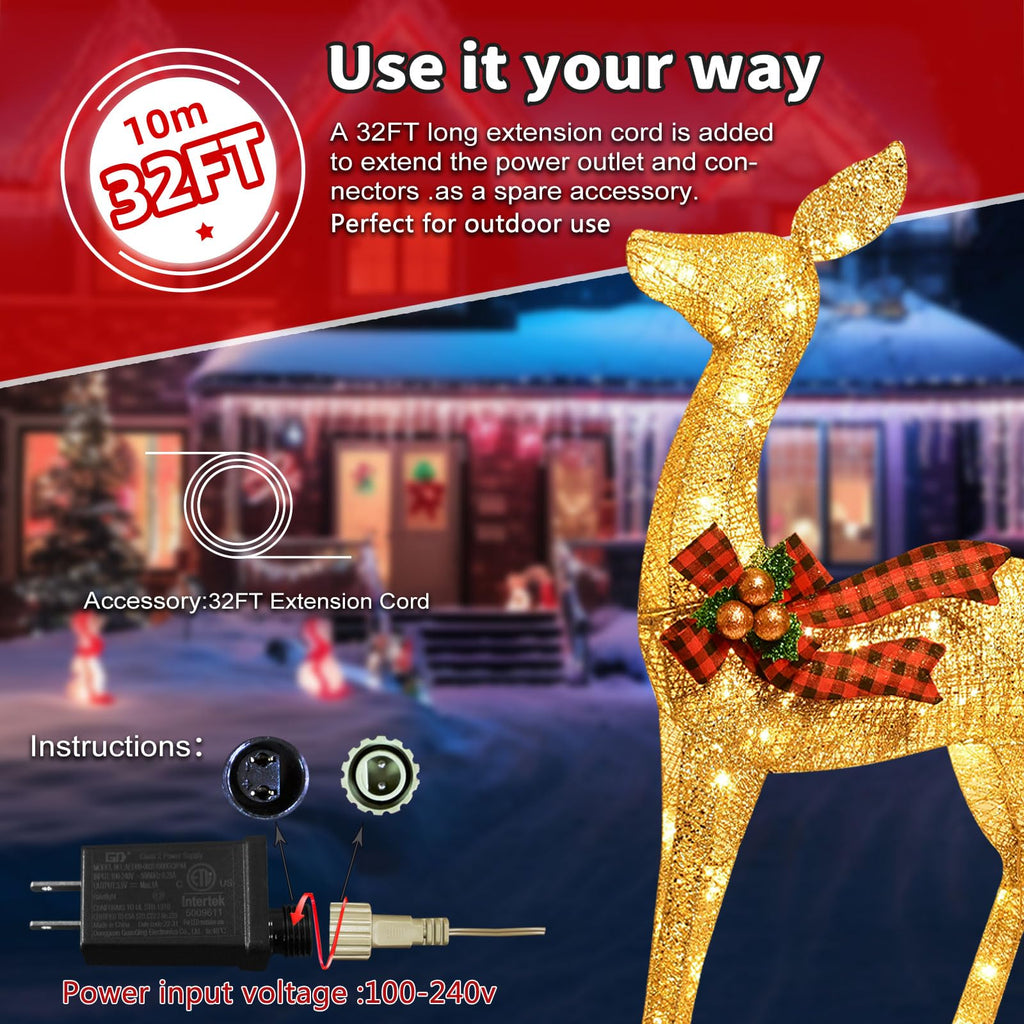 Beleuchtete Weihnachtsdekoration Deer 3 Stücke, Beleuchtete Weihnachtsdekoration Reindeer Familienset für Indoor Outdoor Vorderveranda mit LED, Stecker, Verlängerungskabel, Bodenpfähle, Gold