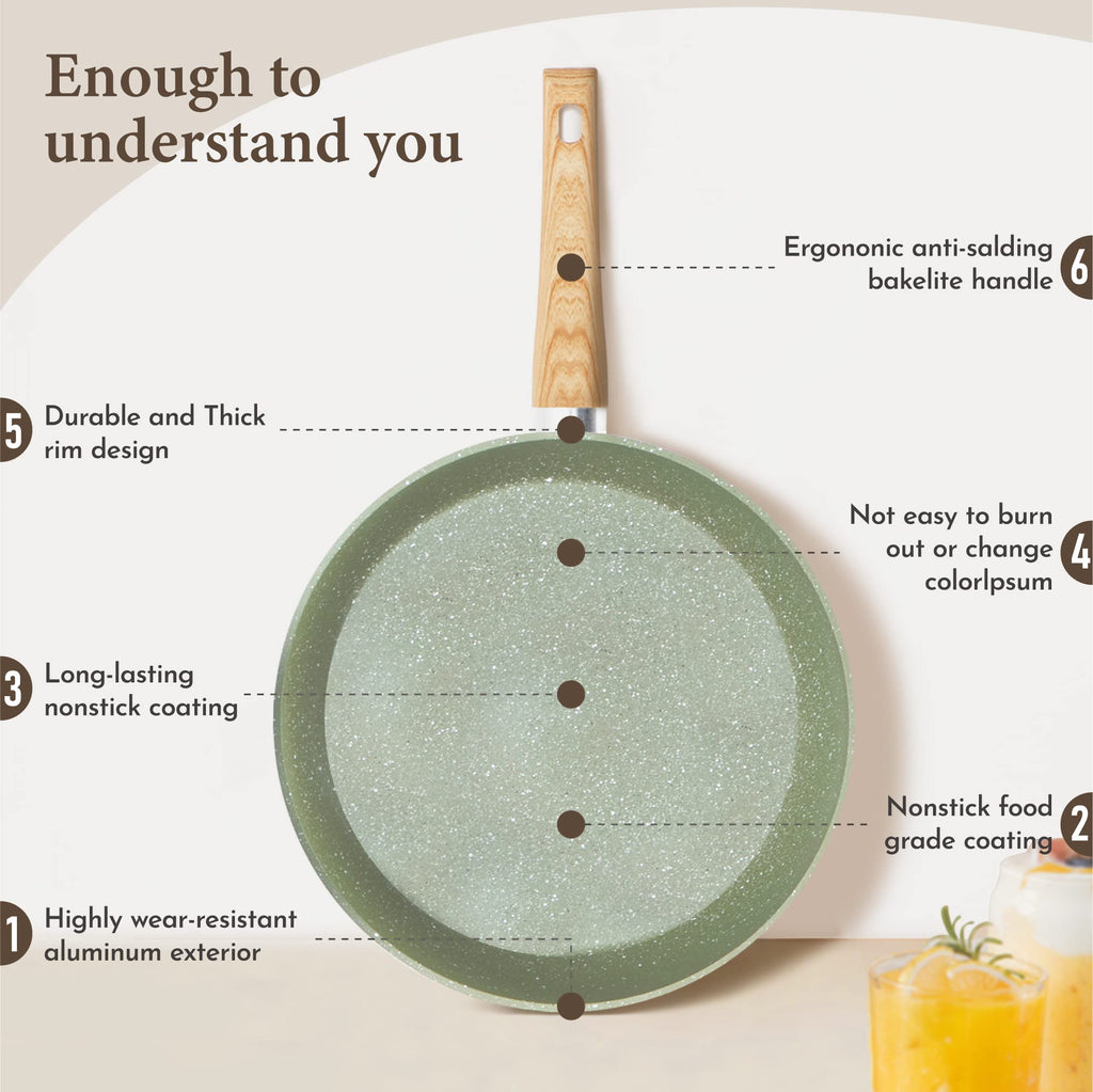 🔥Antihaft Pfannen Set – Beim Kauf von Kochgeschirr ist eines der wichtigen Dinge Antihaft-Fähigkeiten. Die Granitwaren-Beschichtung verhindert das Anhaften von Lebensmitteln. Außerdem können Sie gesündere Mahlzeiten für Ihre Familie kochen, da Sie nicht so viel Öl verwenden müssen. Sie können Tomatensauce sicher in Granit-Kochgeschirr kochen, der Geschmack und Geruch Ihrer Lebensmittel wird sich nicht ändern, auch wenn Sie saure oder stark riechende Zutaten verwenden. Leicht zu reinigen
