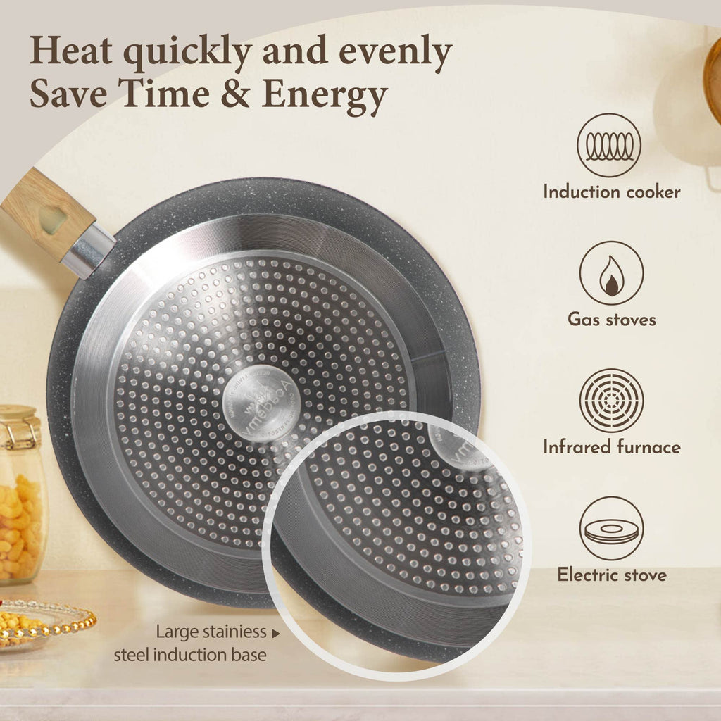 🔥Induktions-Kochgeschirr-Sets – Wenn es um den Innenraum geht, verwendet dieses Kochgeschirr einen Aluminiumkern. Das Ergebnis ist, dass sich die Pfanne schnell erwärmt und noch wichtiger ist, die Wärme gleichmäßig verteilt. Das Kochgeschirr-Set funktioniert auf allen gängigen Herdarten, auch Induktion. Zum Anbraten von Fleisch, Schmoren oder sogar als Wok zum Braten von Reis verwenden.