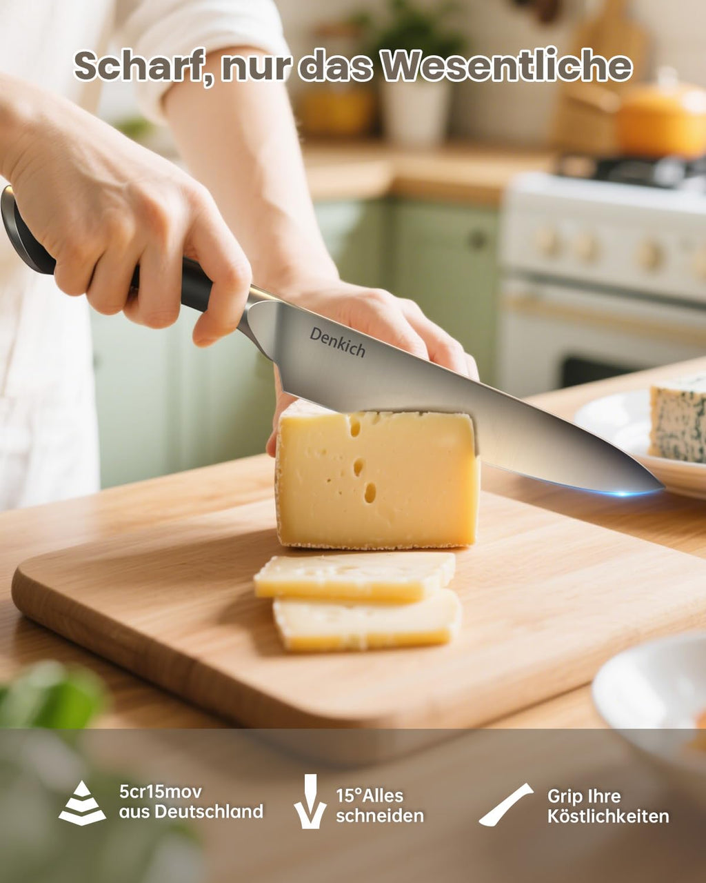 Unser Messerhalter und unser Griff bestehen aus einem brandneuen PP-Verbundwerkstoff, dem häufigen Formproblem bei herkömmlichen Holzmaterialien, wobei die klassische Holzstruktur erhalten bleibt. Das neue PP-Verbundmaterial wird mit einem ergonomischen Design kombiniert, wodurch es leichter und komfortabler wird. Auch stundenlanges Kochen ist kein Problem
