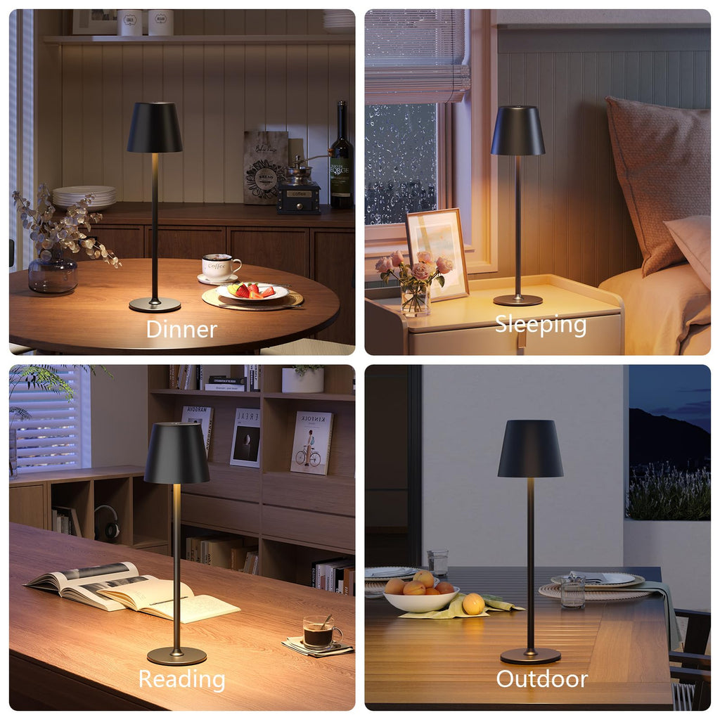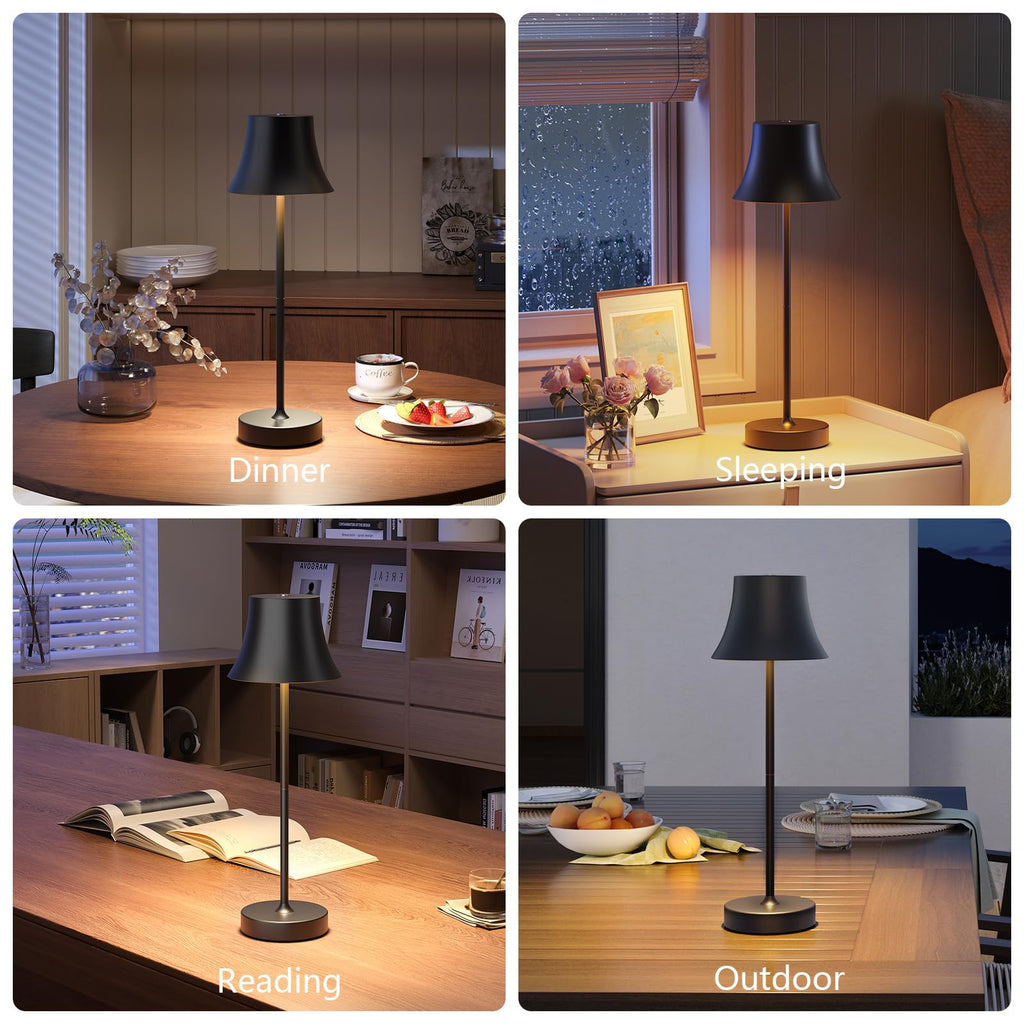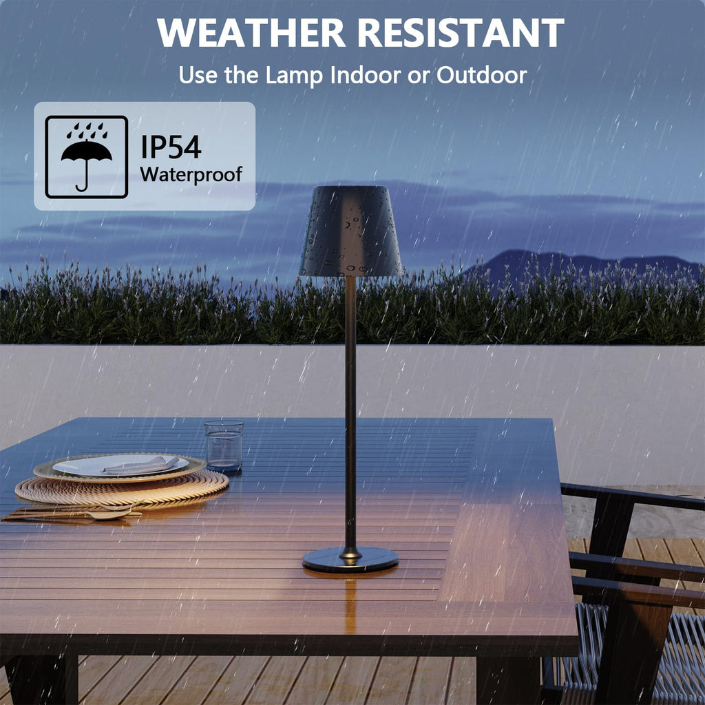 Diese LED Tischlampe bietet kabellose Beleuchtung für den Innen- und Außenbereich.