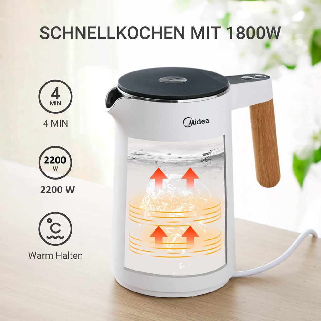 Dieser 2200 W Wasserkocher ist ein effizientes und vielseitiges Gerät, das das Erwärmen von Wasser auf die gewünschte Temperatur ermöglicht.