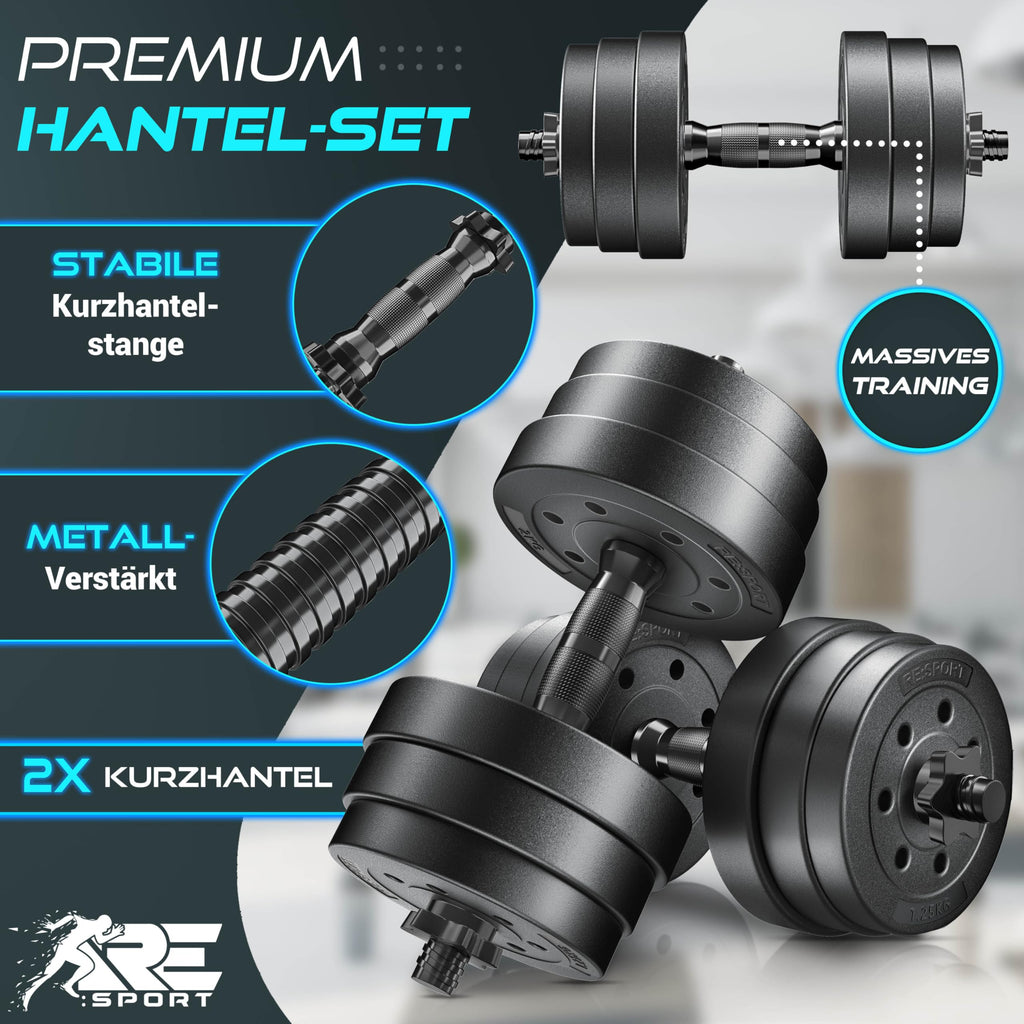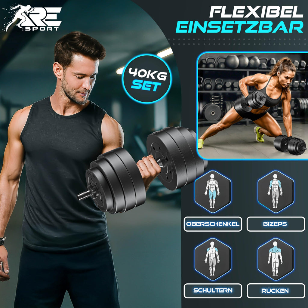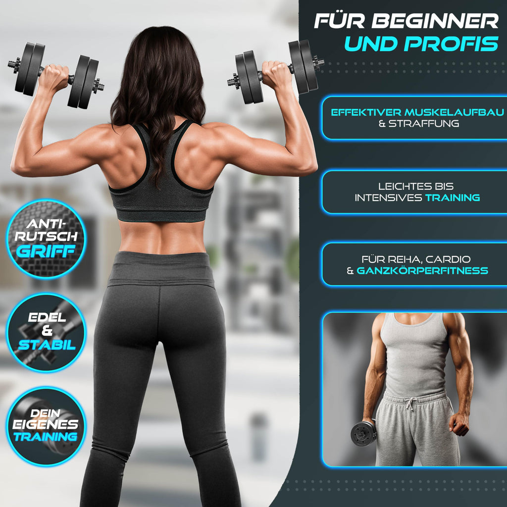 VIELSEITIGES HANTELN SET VERSTELLBAR: Unser Hantelset ist verstellbar und ideal für dein Training Zuhause. Die 2 Kurzhanteln eignen sich für Bizeps, Trizeps, Schultern, Rücken, Brust und Beine – perfekt für effektiven Muskelaufbau. Perfekt für Fitness, Krafttraining und funktionelles Workout im Home Gym.