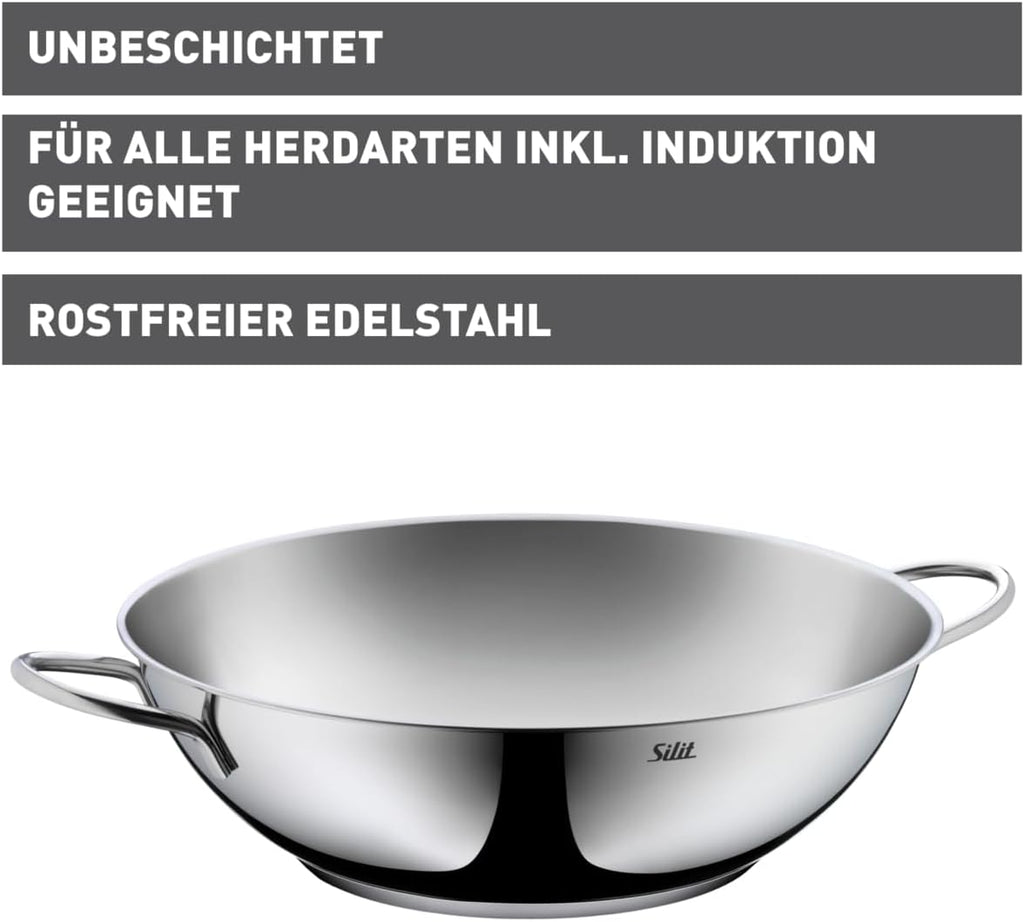 Dieser Edelstahl Wok mit einem Durchmesser von 32 cm ist perfekt für Induktionskochfelder und kann sogar in der Spülmaschine gereinigt werden.
