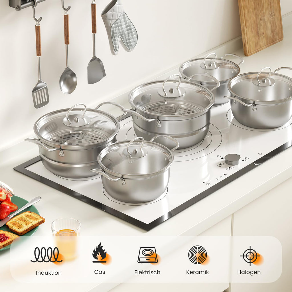 Das Induktionskochtopf Set ist aus hochwertigem Edelstahl gefertigt und eignet sich perfekt für alle Herdarten.