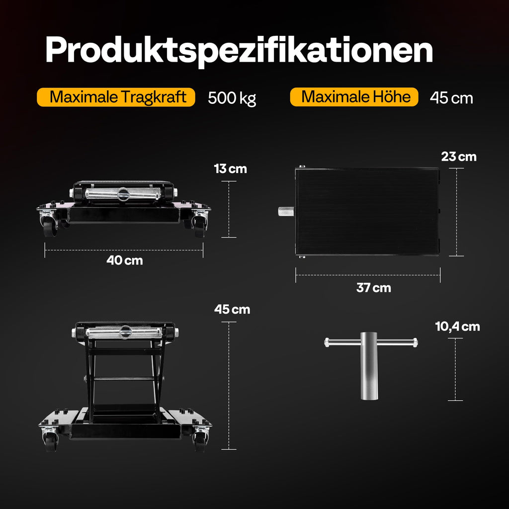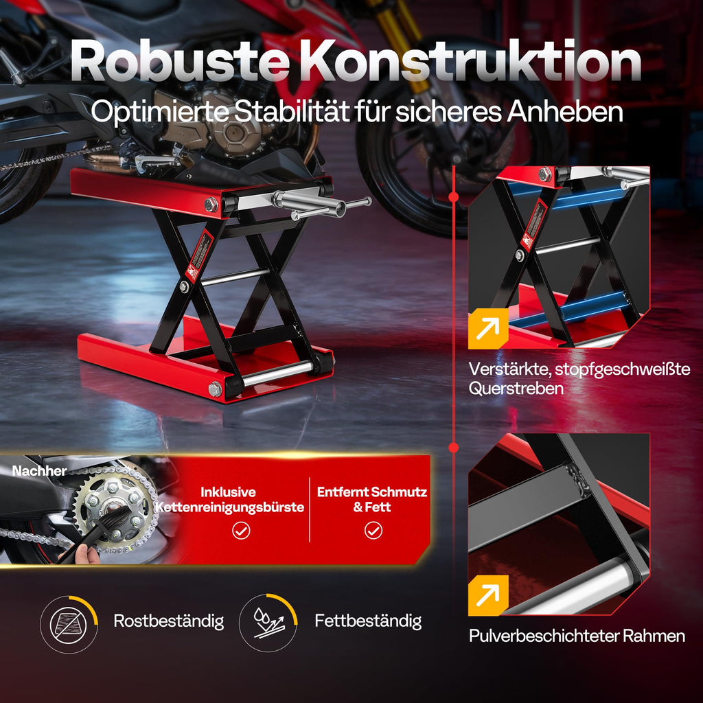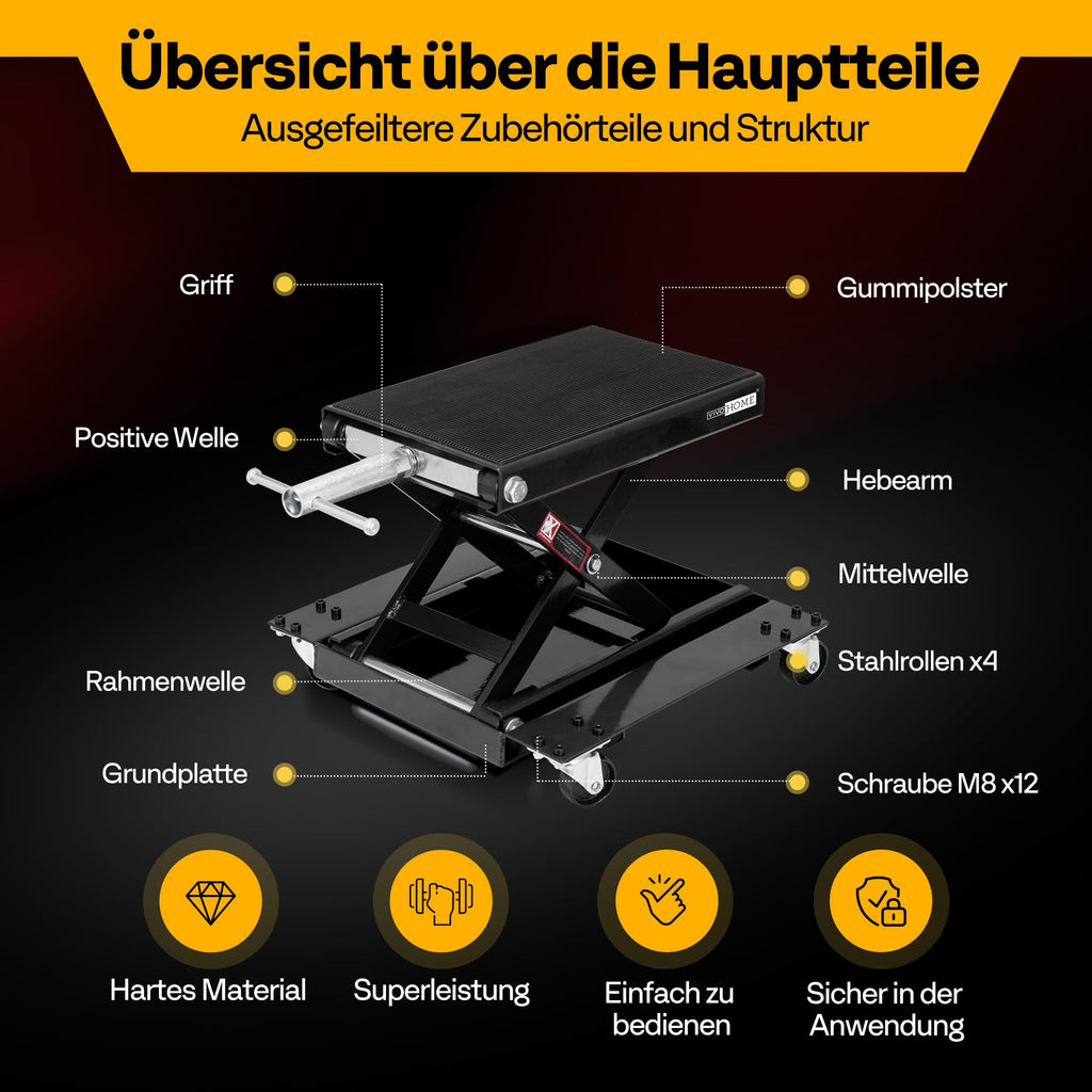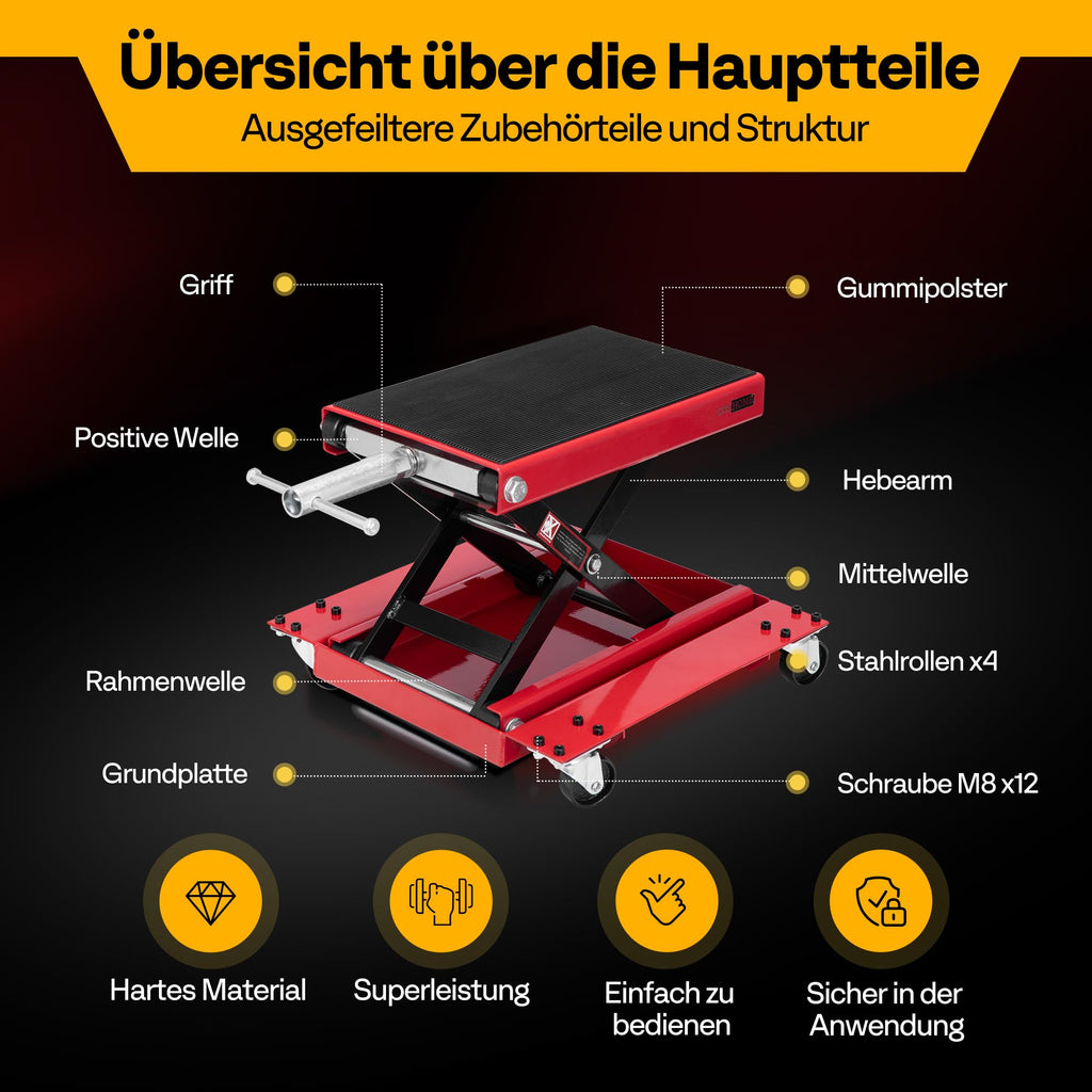 Erhöhen Sie Ihre Motorräder, Off-Road-Fahrzeuge und Schmutzfahrräder mühelos mit dem Motorrad Lift aus robustem Stahl.