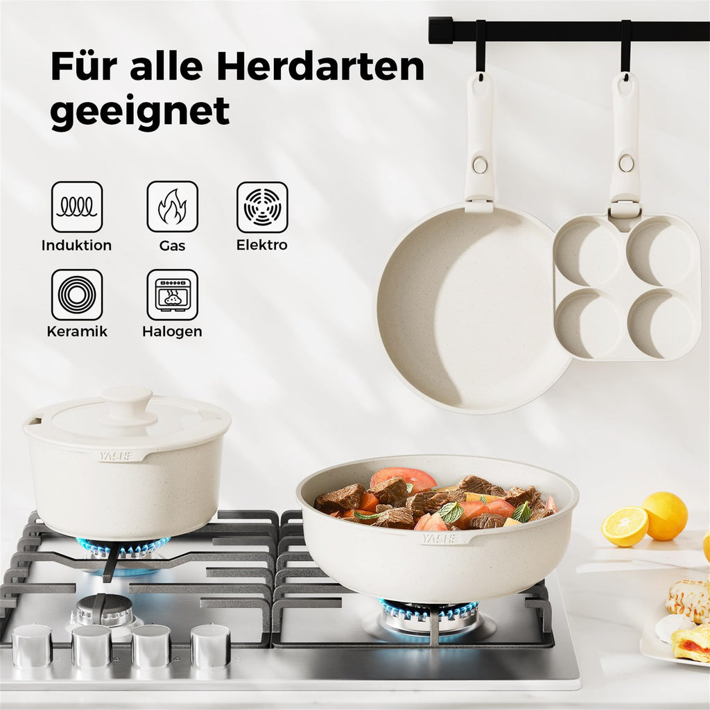 - Komplettes 20-teiliges Set: Enthält Töpfe, Pfannen und wichtige Küchenutensilien, um alle Ihre täglichen Kochbedürfnisse abzudecken.