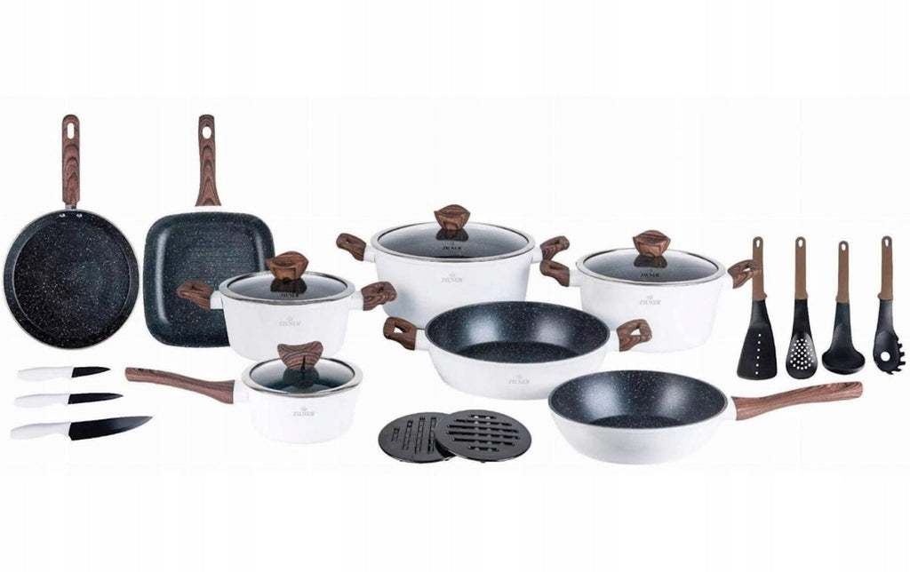 Bereiten Sie köstliche Mahlzeiten mit unserem 21-teiligen Töpfe und Pfannen Set zu. Mit einer langlebigen Marmorbeschichtung und Glasdeckeln ausgestattet, erleichtert dieses Set das Kochen und sorgt für eine einfache Reinigung.